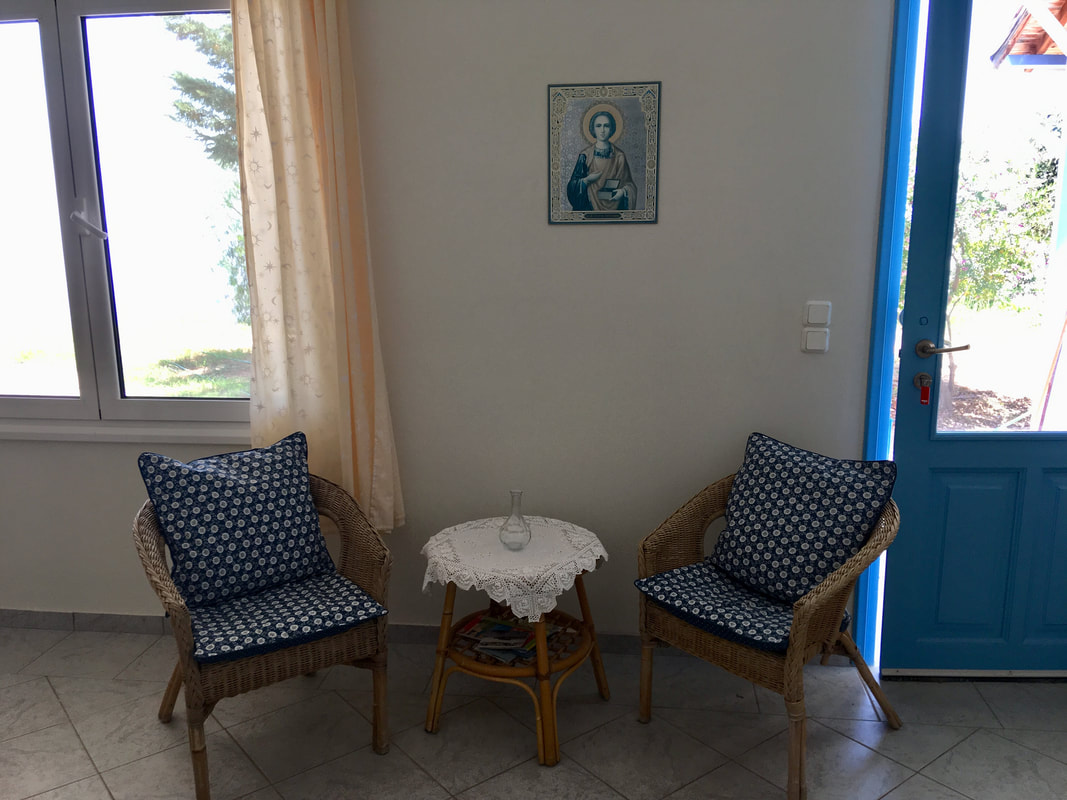 Fønix ligger på toppen af The Golden Garden med en formidabel udsigt over hav og bjerge. Lejligheden har et stort rum med 3 enkeltsenge, og et højt skab giver en vis adskillelse af de to senge fra resten af lejligheden. Der er en stor udestue og en balkon, der også bliver brugt til at sove på ind imellem. På husets bjergside er der en have med en stor nyetableret terrasse. Den er færdigstøbt, og vi skal vælge en belægning til den. Området omkring den er også delvis nyanlagt. Omkring lejligheden er der mange finurlige kroge og mange forskellige smukke planter, også mange roser. Lejligheden har et velassorteret køkken fx er der opvaskemaskine. Farverne i lejligheden er holdt i smukt turkis.
