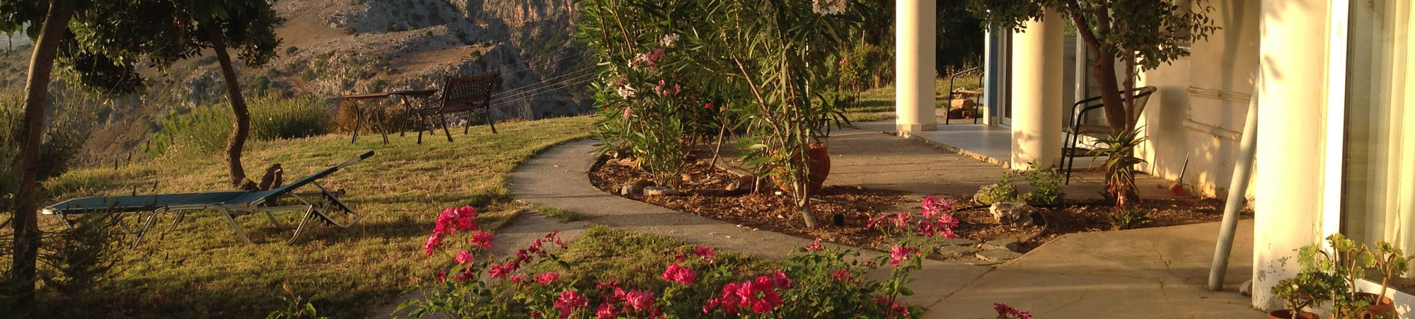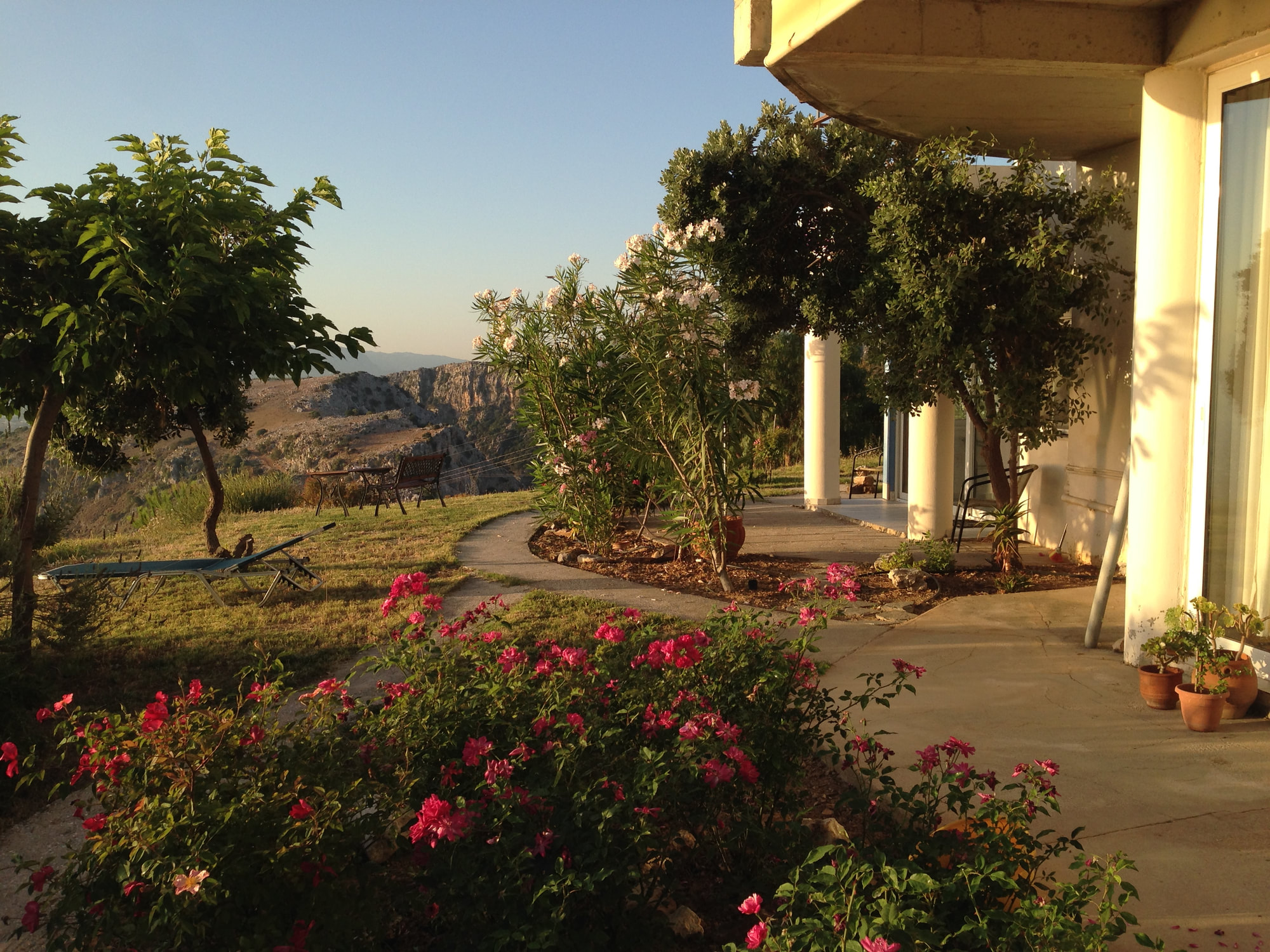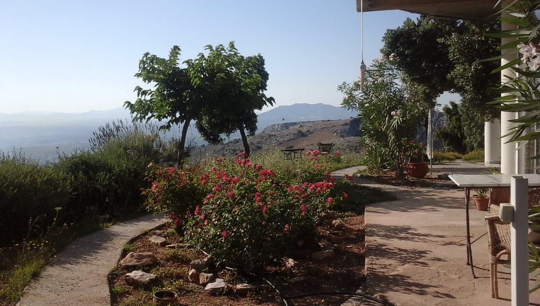 Der er en overdækket terrasse udenfor med cafesæt, hvor du kan sidde og nyde stilheden og udsigten over den smukke Grund, Heraklion by og Middelhavet.