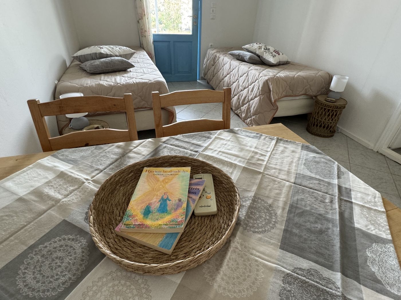 Sofia 2 er hyggeligt møbleret med 2 enkeltsenge, sengeborde, skab og spisebord.
