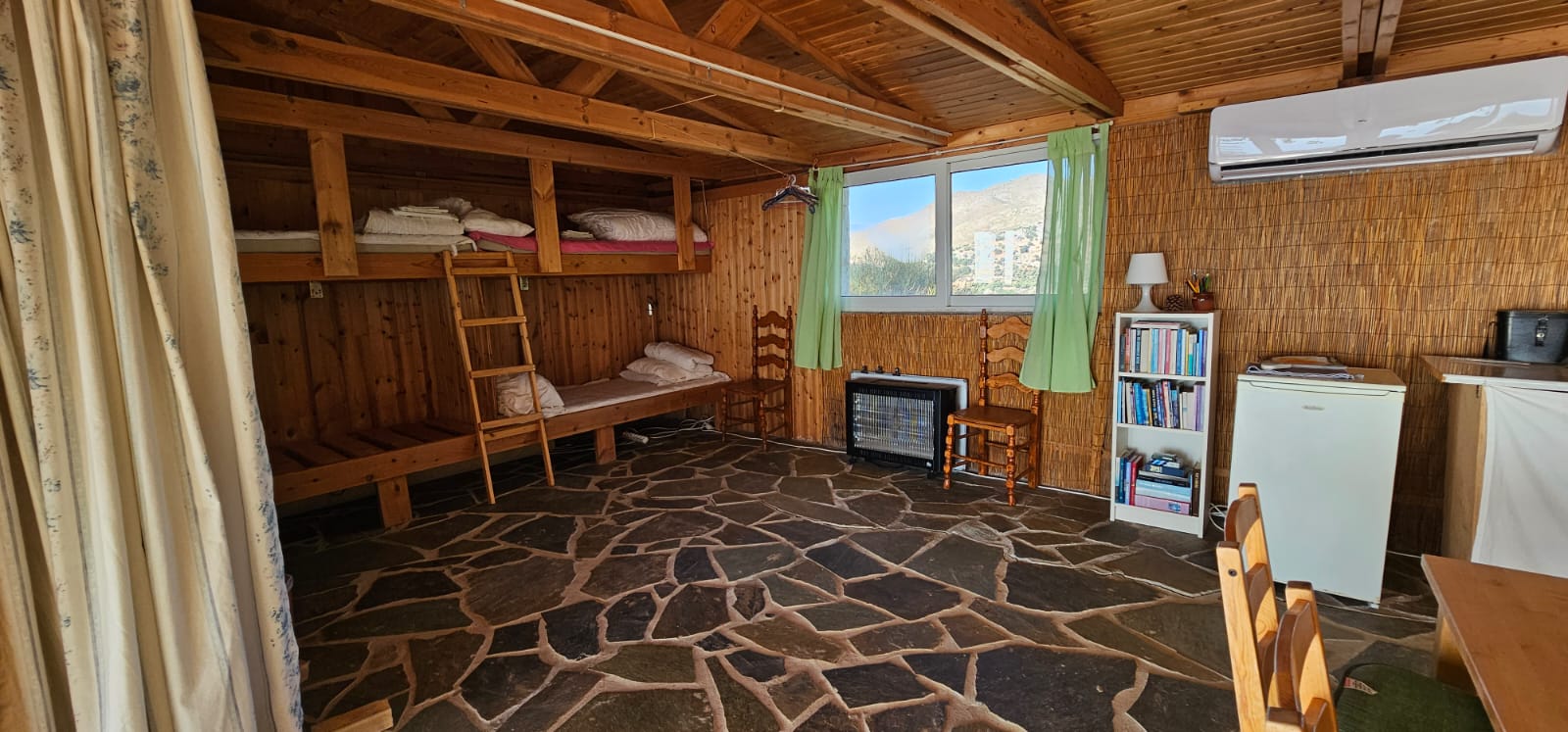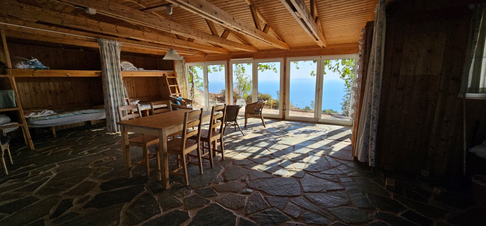 The house has 5 bunks, with 2 and 3 bunks at each end of the house and curtained off to the large common room in the centre. There are 10 possible beds. We recommend sleeping only 5-7 people for everyone's convenience.