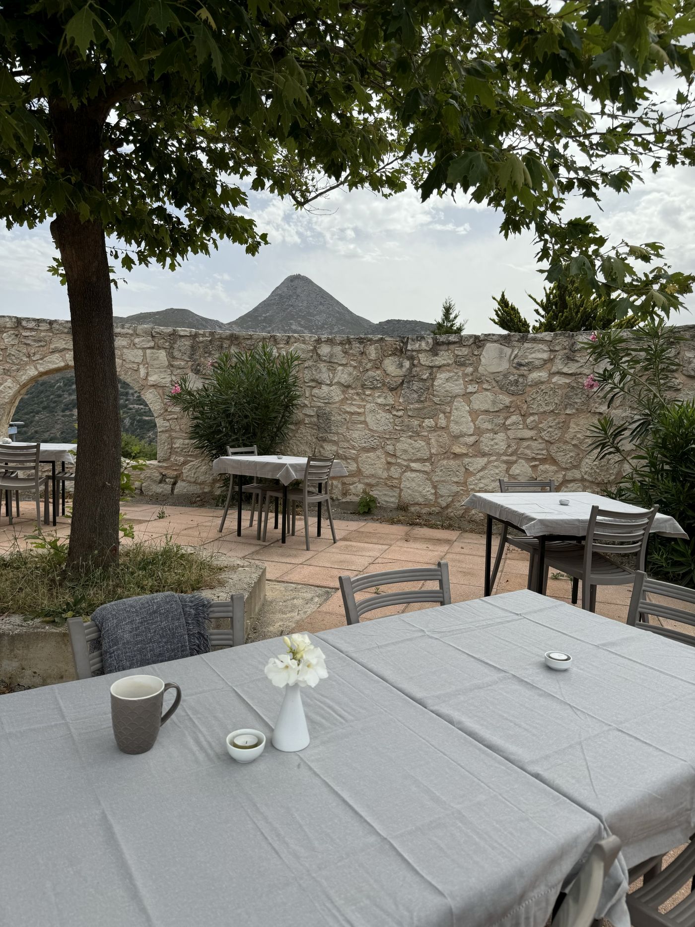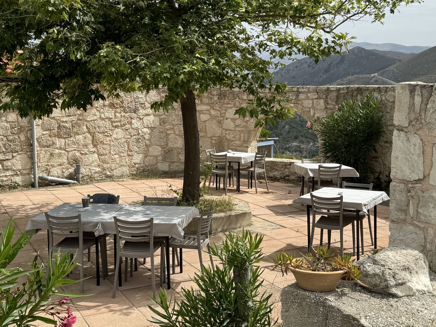 In a separate house there is a kitchen with a professional gas hob and electric oven. There is a separate entrance to the room containing two toilets and a shower. Outside there is a large, cosy café area with tables and chairs.