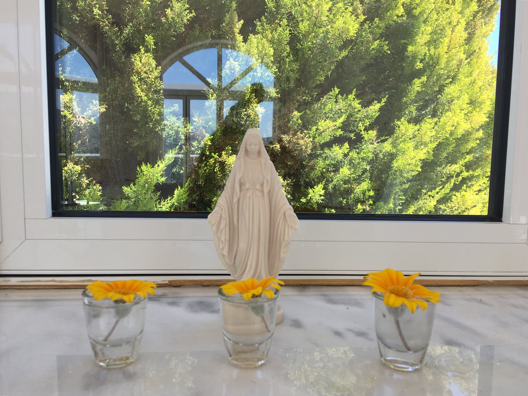 In the temple building the Temple is on the upper floor, and a space for physical and creative activities on the lower floor.